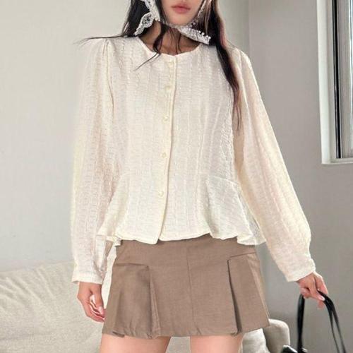 Vezri 여성용 봄 가을 브이넥 시크 예쁜 고급스러운 허리조임 짧은 긴팔 블라우스 SKZ111
