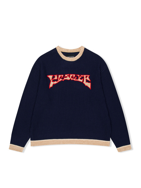 [예스아이씨] 로고 아플리케 니트 풀오버 네이비