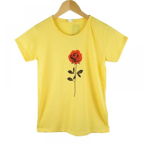 라운드 장미한송이 티셔츠-옐로우 여름티셔츠 0