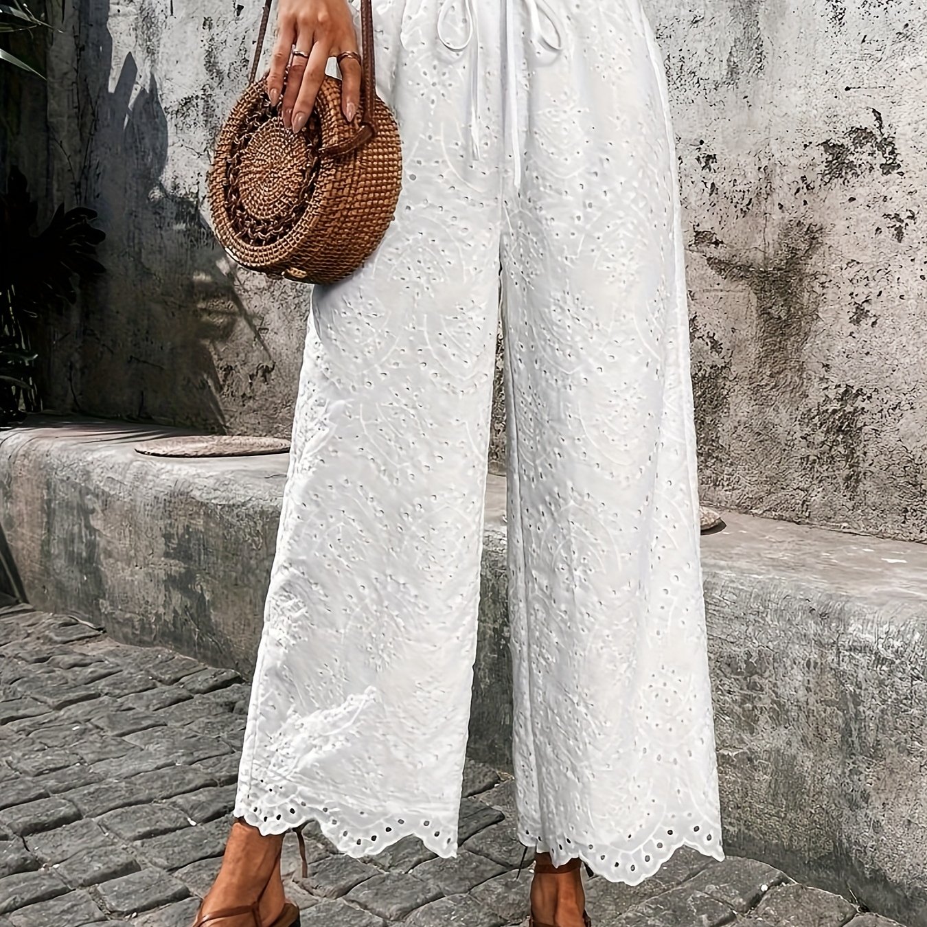 TEMU 여성용 플러스 사이즈 녹색 와이드 레그 팬츠 - 스트레치되지 않음, 직선형, 봄/여름 패션, 드로스트링 허리, 캐주얼 착용, 캐주얼 착용 팬츠|와이드 레그 패션|드로스트링 허리띠, 플러스 사이즈 팬츠