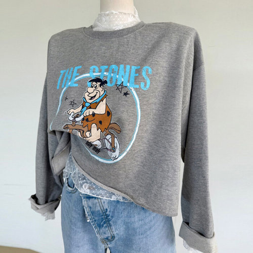 입꼬 / 루즈핏 오버로크 스티치 박스 맨투맨