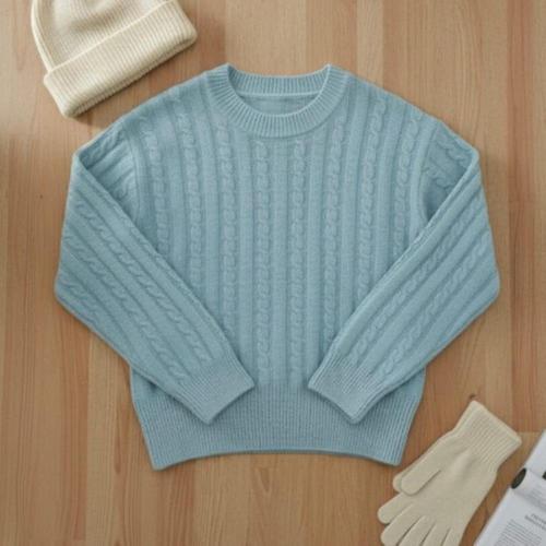 [미라클세븐]여성용 오버사이즈 라운드넥 꽈배기 울혼합 니트