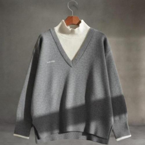 [미라클세븐]여성 오버사이즈 긴팔 니트 반하이넥 클래식 스타일