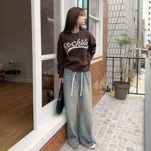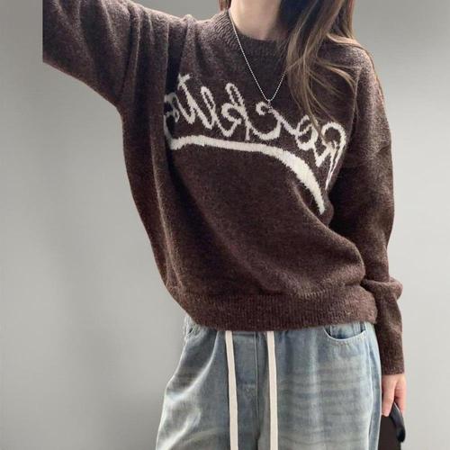 [미라클세븐]여성 울 혼합 레터링 포근한 라운드넥 오버사이즈 니트