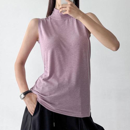 [신상오픈런]여성용 스판 루즈핏 민소매 목폴라 티셔츠 무지 디자인