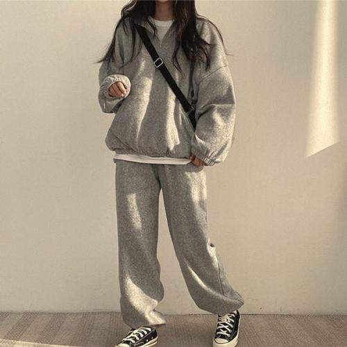 [에이치플러스몰]여성 따뜻한 반집업 트레이닝 세트 1P 루즈핏 셋업