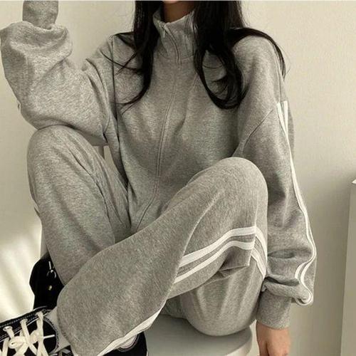 [에이치플러스몰]여성 스트라이프 집업 트레이닝 세트 1P 루즈핏 셋업