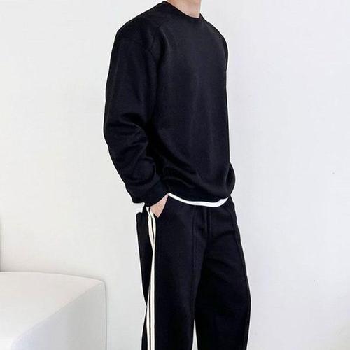 [에이치플러스몰]남성 베이직 맨투맨 밴딩팬츠 세트 오버핏 트레이닝