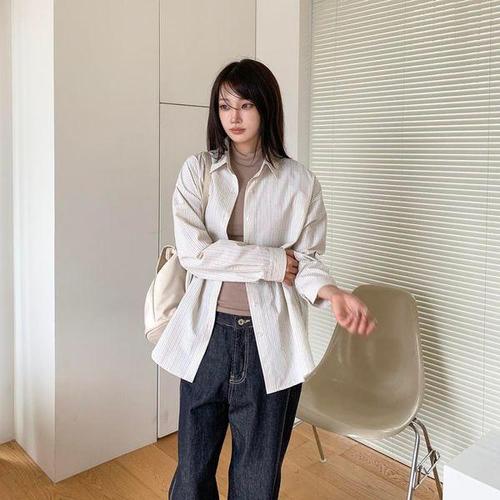 [옷자락]여자 코튼 스트라이프 루즈핏 카라넥 남방 셔츠