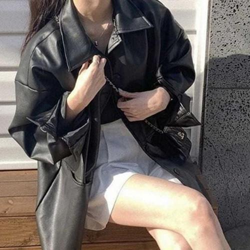 [라일리여성의류] Rly 오버핏 여성 레더 자켓 캐주얼 여성 인조 가죽