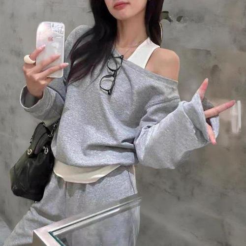[옷자락]여성 나시 레이어드 오버핏 맨투맨 조거팬츠 세트