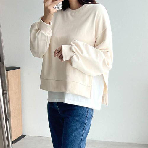 [JHMQ7Q70_51HD]오버핏 맨투맨 무지 레이어드 티셔츠