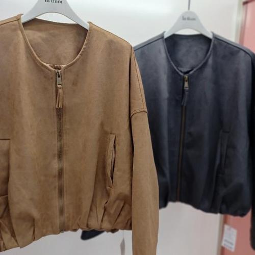 [옷자락]여자 키치무드 스웨이드 카라넥 크롭 루즈핏 자켓