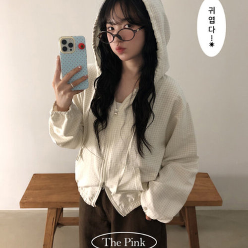 더핑크 / 코람 루즈핏 체크 스웨이드 바람막이 자켓