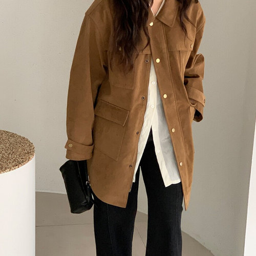 지니 여성 데일리 스웨이드 자켓 빅사이즈 오버핏 기본 자켓 케주얼 재킷