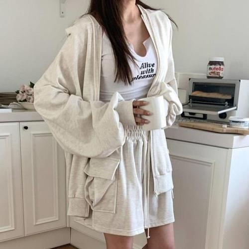 여성 2컬러 데일리 오버핏 무지 후드집업