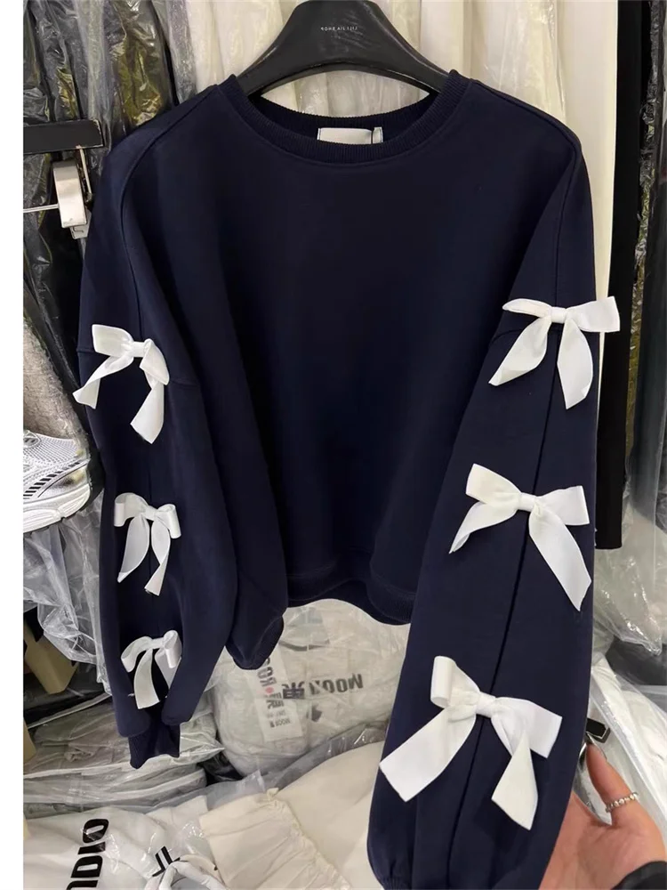 루즈핏 라운드넥 긴팔 후드티 여성 디자인 센세이션 패셔너블 나비 매듭 가을 신상 동대문