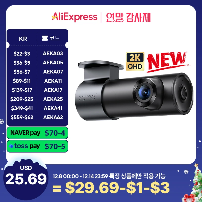 70mai 대시캠 M310 플러스 2K 1440P 143 ° FOV F1.55 스마트 음성 제어 24시간 주차 감시 야간 시야 70mai M310 Plus 2K 차량용 블랙박스