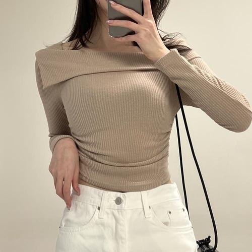[옷자락]여자 슬림핏 글램 홀터넥 오프숄더 골지 긴팔 티셔츠