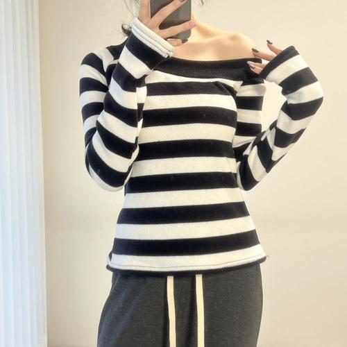 [옷자락] 여자 단가라 언발 오프숄더 긴팔 나그랑 기모 티셔츠