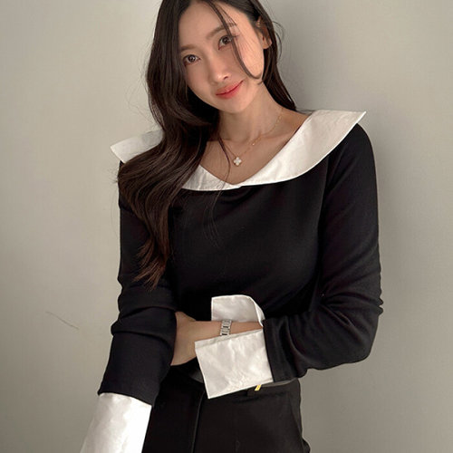 더클립 / 도로시 보트넥 배색 카라 블라우스