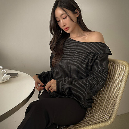 더클립 / 아벨 핀스트라이프 오프숄더 블라우스