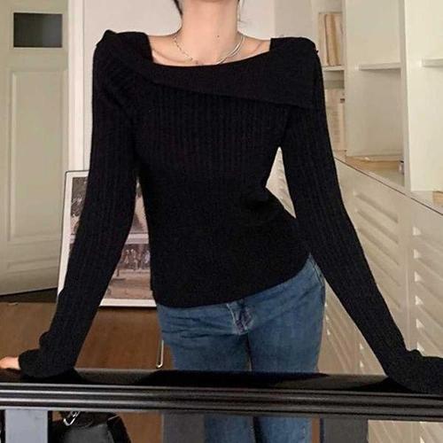 [셀러허브_여성트랜드패션]ONM 데일리 오프숄더 핏 쫀쫀 골지 니트 긴팔티