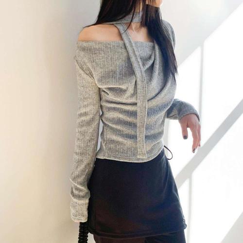[옷자락]여자 슬림핏 일체형 홀터넥 오프숄더 니트