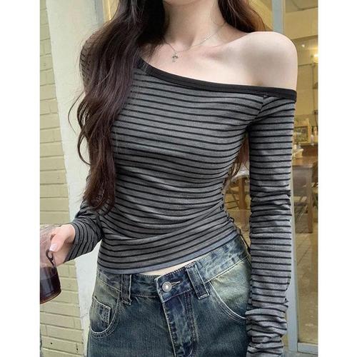 [에어플레인]스트라이프 원숄더 긴소매 티셔츠 오프숄더(2color)