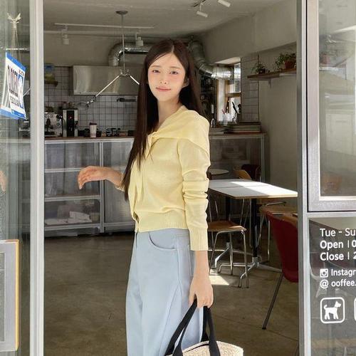 ( )걸스 봄철 W 스웨터 칼라 세로패턴 오픈니트아이보리 심플 봄가디건 여성봄 두꺼운 빅카라