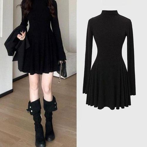 [시크라인] (~XXL까지) 제미 카라 배색 타이 니트 플레어 원피스 여름 하객룩 오피스룩 데이트 모임 미시 빅사이즈