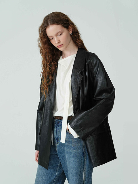 [온앤온](센텀시티점)[정채연 착용] 오픈 카라 레더 자켓 NEL5SJ211_9F