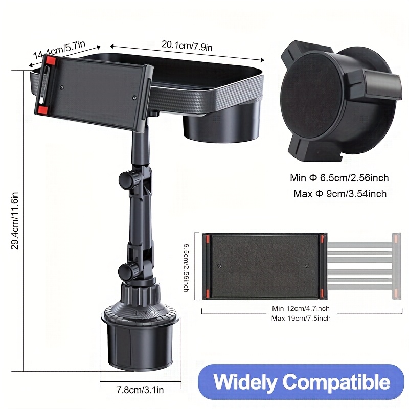 TEMU 3-in-1 차량용 컵홀더 트레이 태블릿 스탠드, 대용량 내비게이션 마운트, 4~12인치 태블릿 및 휴대폰 호환 자동차 식사용 접시