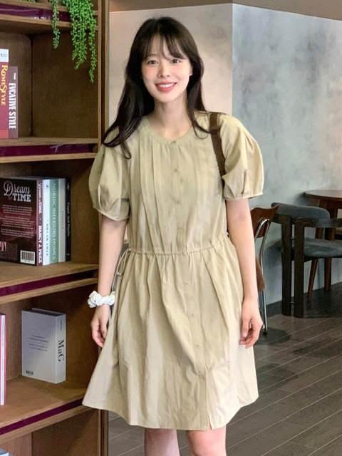 올리브데올리브 볼륨소매 셔링 플레어원피스 OW4MO521