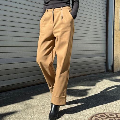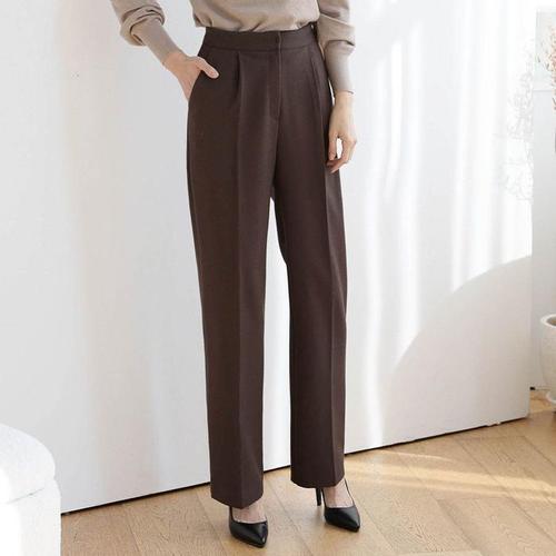 여자 편한 FW 갈색 속기모 핀턱 일자핏 슬랙스