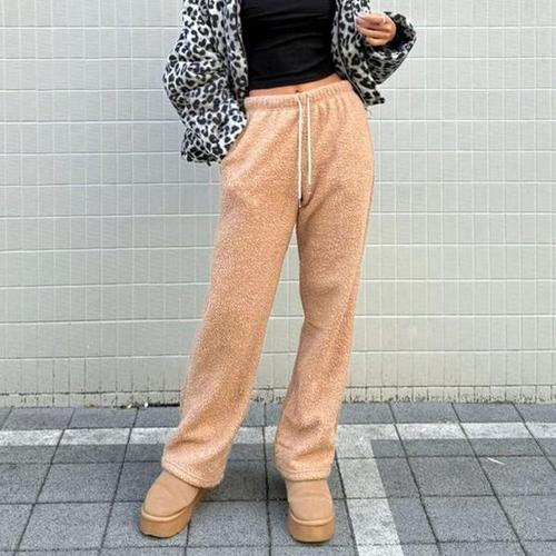 [옷자락]여자 일자핏 속기모 양털 겨울후리스 고무줄 바지