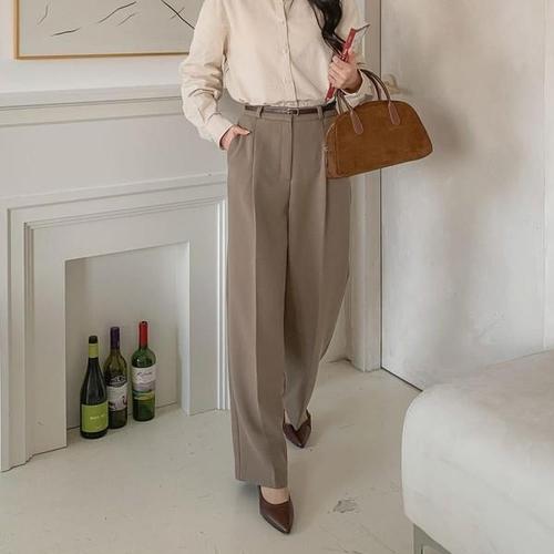 [옷자락] 여자 속기모 정장팬츠 핀턱 일자핏 오피스룩 슬랙스