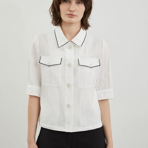 [올리비아로렌]자수 포인트 밴드 카라 자켓_VVCCL4S1371