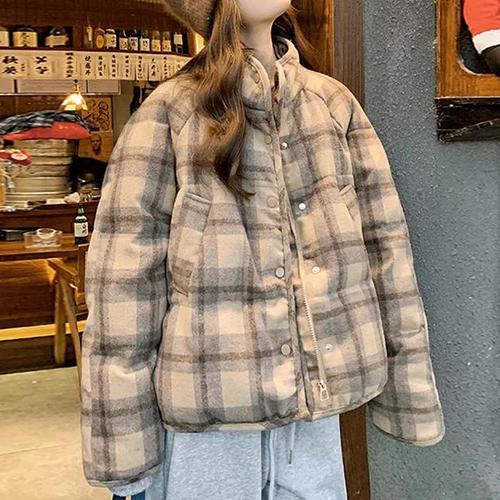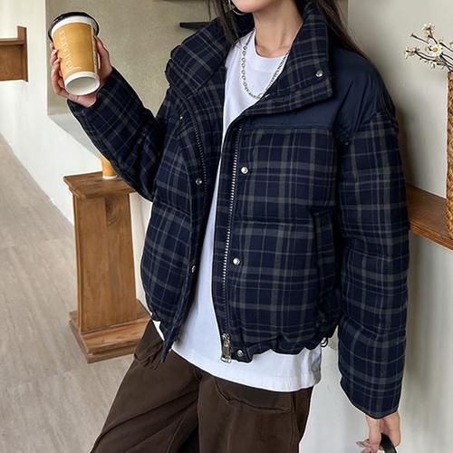 [올리비에스클로젯]오버핏 체크 빈티지 집업 패딩점퍼_O2511PD004D