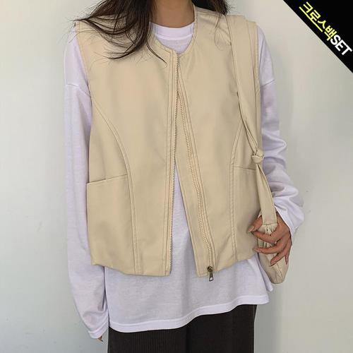 [올리비에스클로젯][크로스백SET]레더 집업 조끼_O2510SE085C