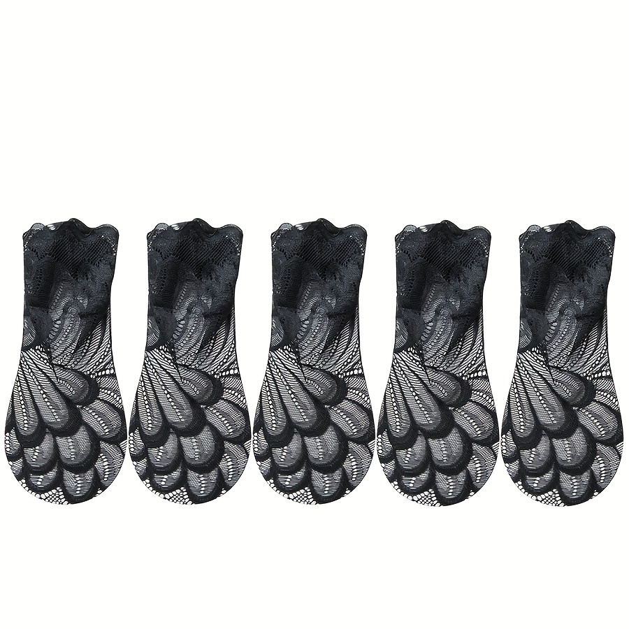TEMU 5 쌍 여성용 레이스 꽃 메쉬 발목 양말 - 미끄럼 방지, 보이지 않는 안감 양말, 신축성 있는 허리띠, 통기성 및 얇은 디자인, 투명한 레이스 오버레이, 캐주얼한 의상에 완벽한 귀여운 양말