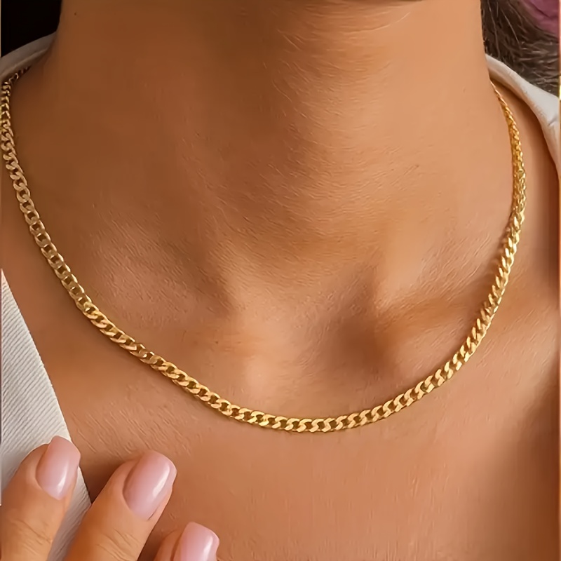 TEMU 1개 여성용 18K 금도금 스테인리스 스틸 청키 쿠바 링크 목걸이 - 3mm 두께 헤비 듀티 인터로킹 체인, 빈티지 스트리트 스타일 주얼리 (일상 및 파티용), 올 시즌 착용, 파티 액세서리, 내구성 좋은 액세서리, 피스
