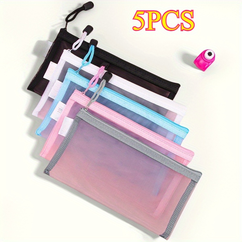 TEMU 지퍼형 메쉬백 5개 세트, 다용도 나일론 메쉬 수납백, 휴대용 메쉬 필통, 여행 정리함, 일상 및 여행 필수품, 아이템 수납백, 다양한 색상