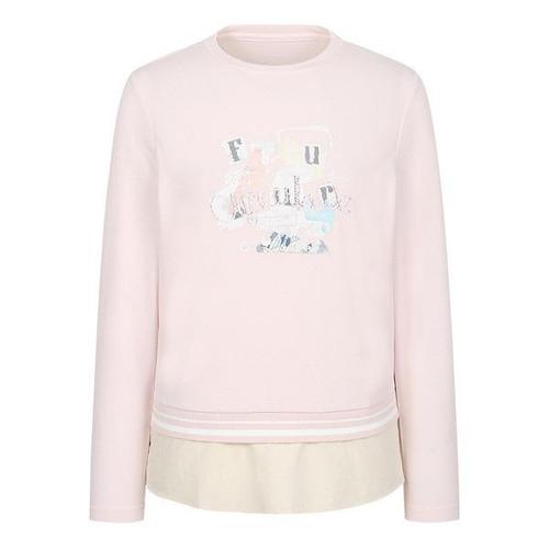 [올포유]밑단 우븐 배색 원포인트 라운드 티셔츠