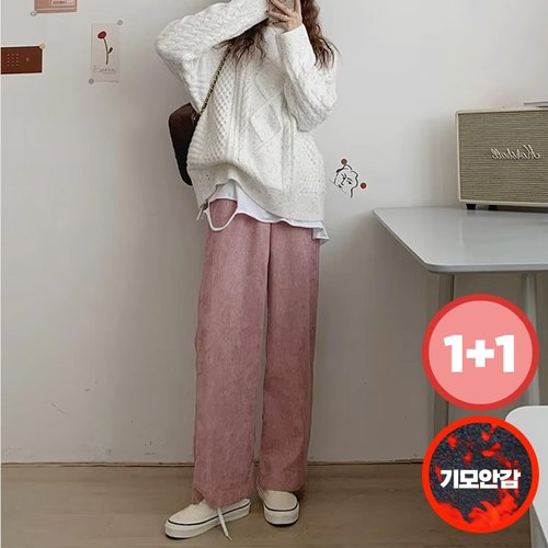 [1+1세트] 여성 루즈핏 기모 코듀로이 와이드팬츠 밴딩바지 BLDN31124WS