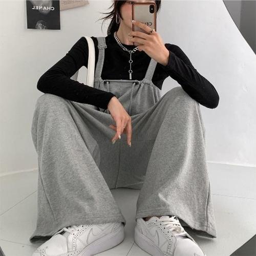 [옷자락]여자 라벨 투포켓 멜빵 일자 와이드핏 가을 점프수트