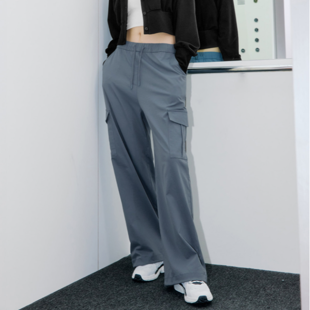 허리밴딩 하이웨스트 바스락 캐주얼 통기성 여자 코튼 팬츠 와이드 퀵드라이 냉장고