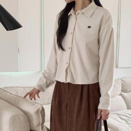 [옷자락] 여성 키치 무드 와펜 골덴 셔츠 여유핏 남방
