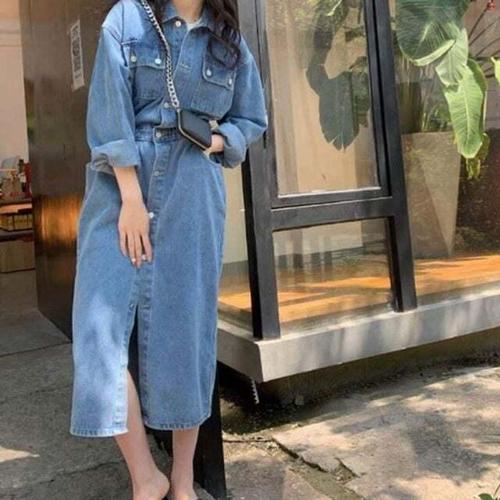 상상그이상 여성용 전체 오픈 청원피스 데님 롱원피스 포켓 포인트 오피스룩 편하게 입는 원피스