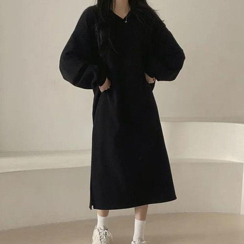 [모노무드]모노무드 캐주얼 편한 루즈핏 후드 롱원피스 나들이 외출복